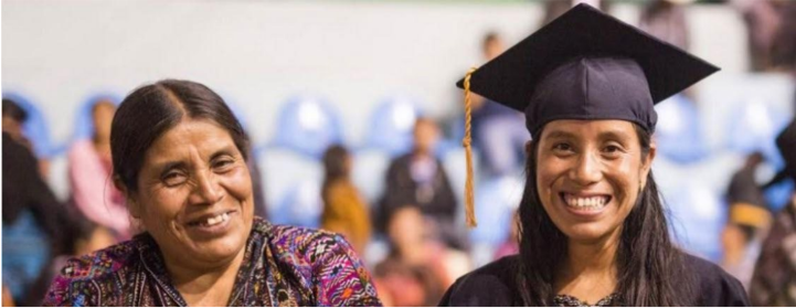Living On One. (2012). Rosa Coj Bocel en su toga y birrete de graduación, junto a otra mujer usando un traje regional guatemalteco [Fotografía]. Living on One Dollar. http://www.livingonone.org/living-on-one-dollar/en/